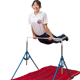 年齢体力に応じた指導を行い、器械体操を中心に、運動能力の向上を目指します。 幼少期で一番大切な感覚運動(回転・平衡・逆さなど)を体育遊びに楽しく取り入れ、その中で話を聞く態度やしつけ、友達に対する思いやりなどを重点に伸ばしていきます。