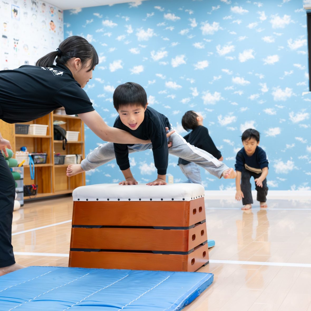 成功、失敗がわかりやすく苦手な子の多い器械運動。だからこそ、入学前に行なうことで自信を持って器械運動に取り組むことができ、苦手な子は経験を多く積むことで早く上達できます。